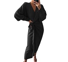 Amazon Com Exlura Womens Knit Sweater Dress Casual Solid Long Sleeve Wrap Maxi Dresses With Belt Black Clothing Shoes Jewelry